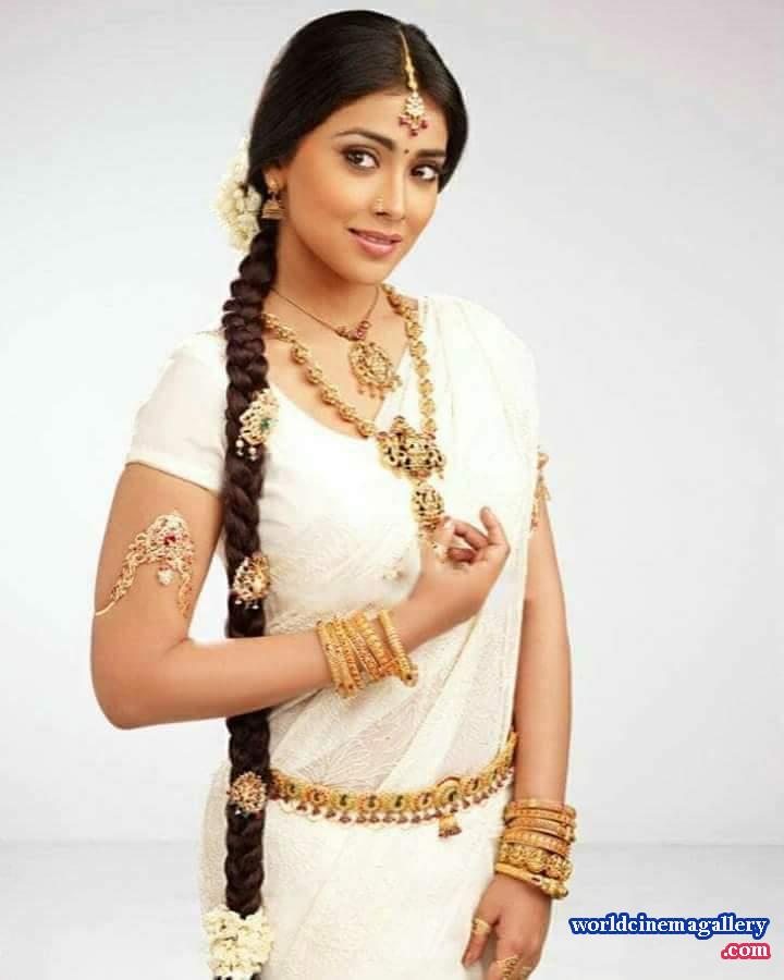 Shriya Saran white Saree stills