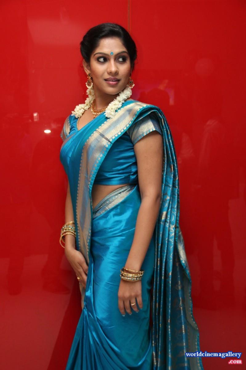 Swasika Blue Saree Stills At Appuchi Gramam Movie Audio Launch